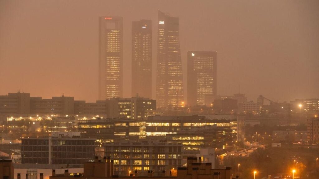 The main cause of the red sky was Sahara Desert dust carried by strong winds across the Mediterranean.