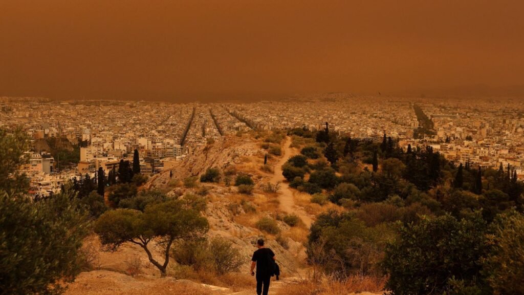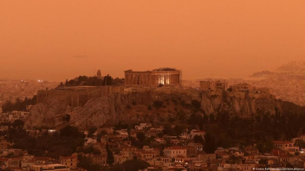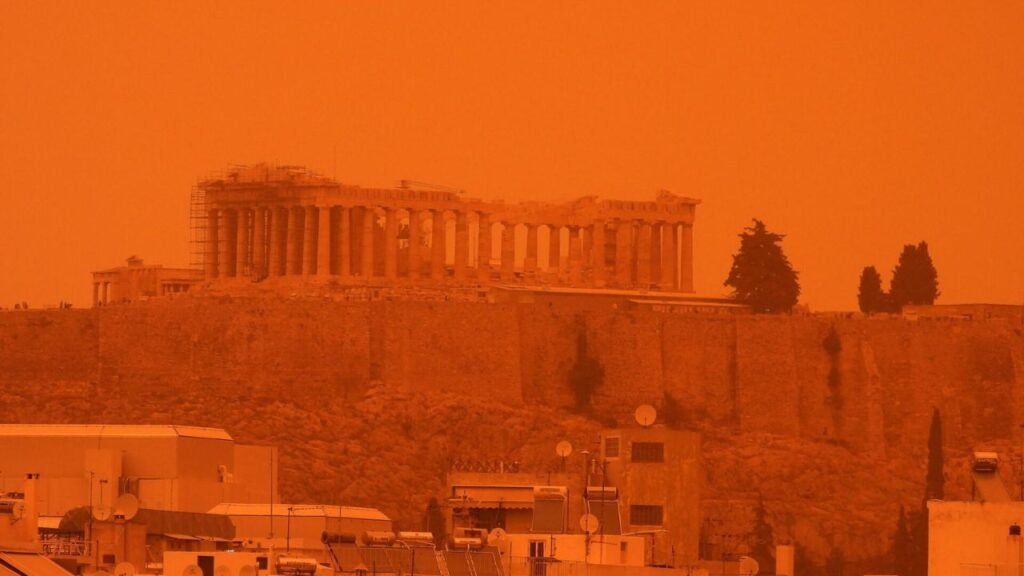 In early 2026, several cities across Greece experienced a sudden transformation in the sky’s color. Instead of the usual blue, the sky appeared bright red and orange.